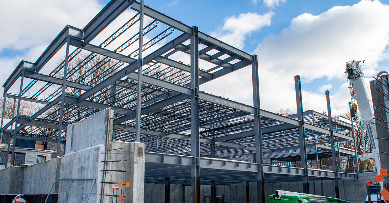 Throughout the winter months, steel beams were installed to support the floors, walls and roof.