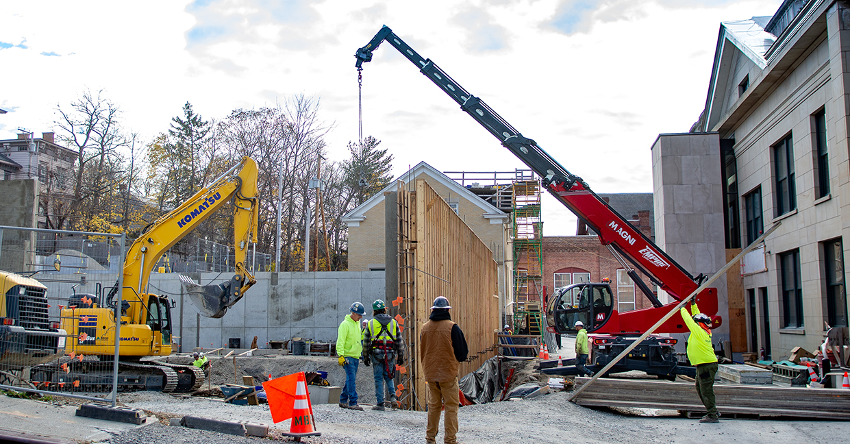 With excavation complete and the footers in place, cranes moved in to set steel support framing in November.