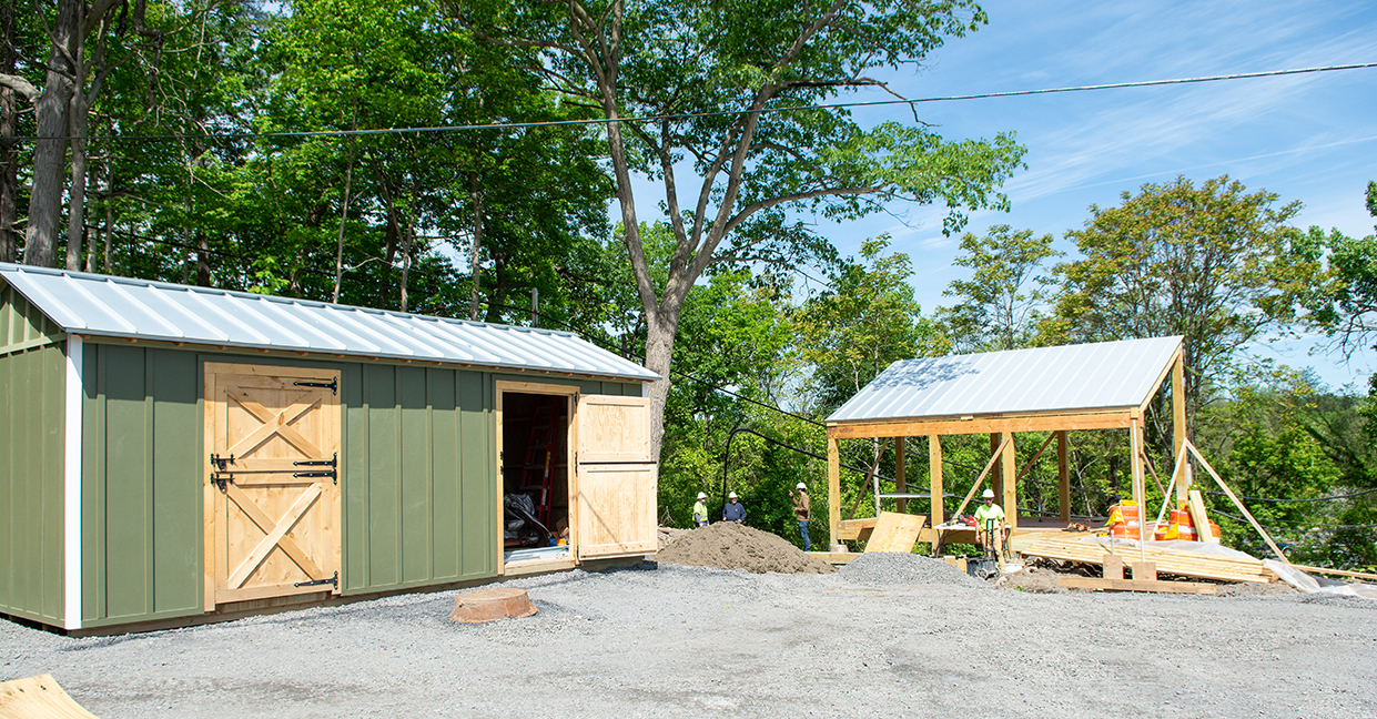 Spring weather supported the construction of an exterior storage shed and Observation Pavillion.